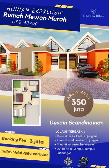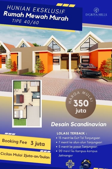 Dijual sebuah rumah perumahan D'Griya Hills, Jatinangor, Sumedang. Perumahan dengan lokasi strategis dengan konsep scandinavian modern dan cocok untuk anda yang menginginkan hunian modern ala Eropa sekaligus berada di lingkungan yang asri dan sejuk.