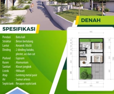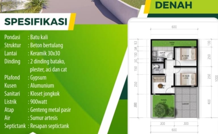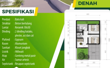 Luas: LT: 60 sqm, LB: 30 sqm