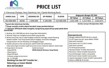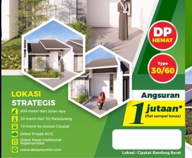 Dijual sebuah rumah subsidi di kawasan ekonomi berkembang, Bandung Barat yaitu De Kareumbi Residence. Dengan DP rendah dan cicilan ringan sekaligus tenor panjang menjadikan De Kareumbi Residence menjadi pilihan yang tepat bagi anda untuk memiliki hunian pertama dengan budget terbatas.