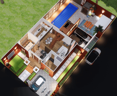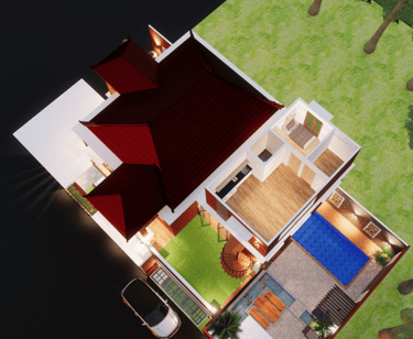 Rumah dengan konsep villa 3 lantai dengan kolam renang di tengah kota Garut. Design bisa sesuai permintaan (custom).